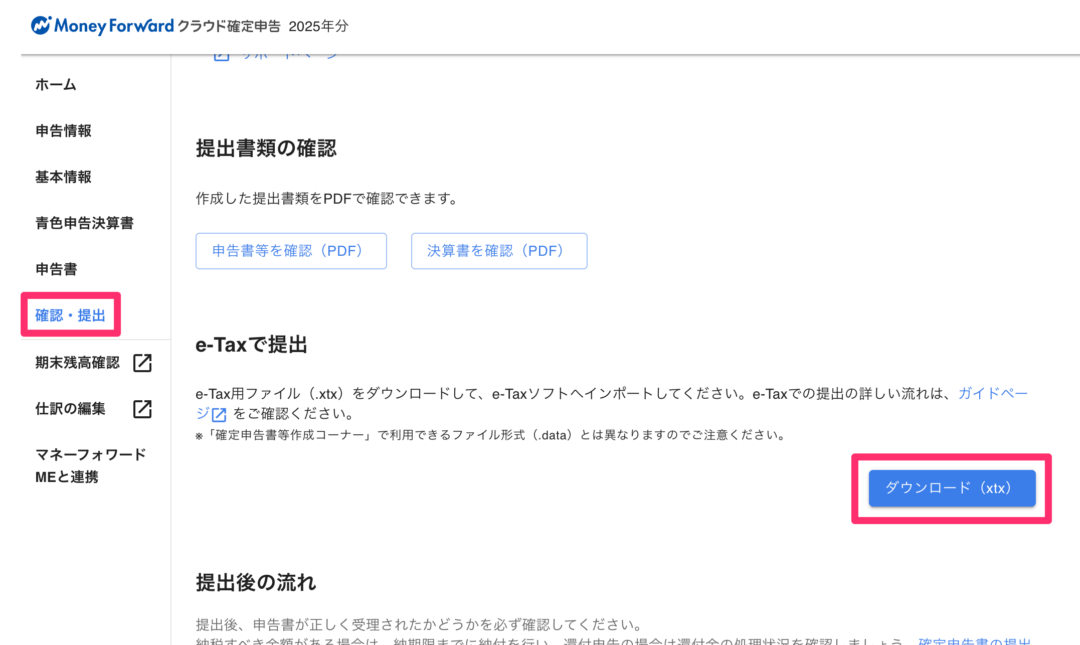 - マネーフォワードクラウド確定申告で作成したデータを、e-Tax(XTXファイル)で提出する方法がわかりにくすぎる。