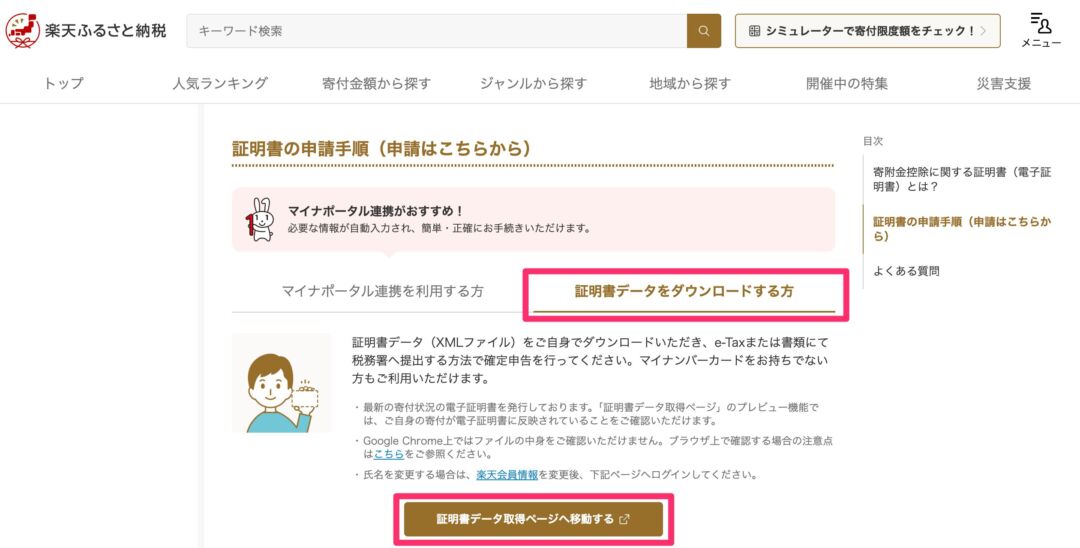 準備:ふるさと納税サイトから証明書データ(XMLファイル)をダウンロードする